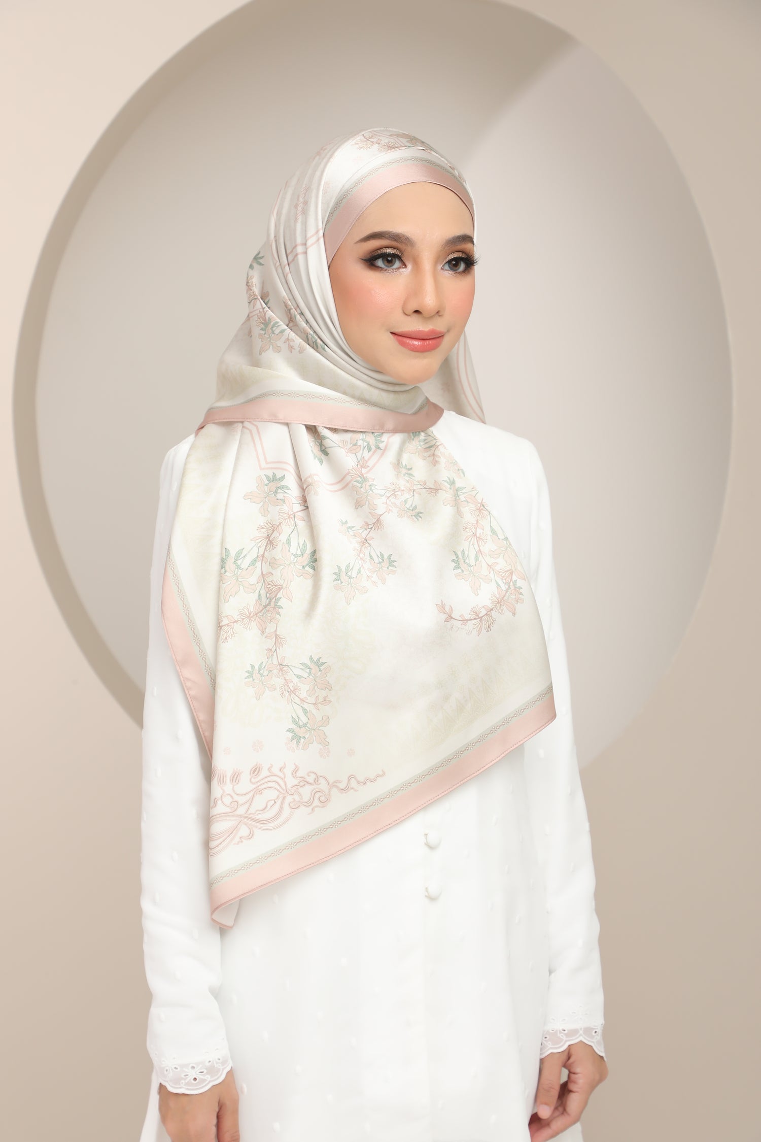 Fall in love with the latest collection exclusively from Mizah B, Songket Affair. Inspired by the opulent songket fabric made into ceremonial clothing for royalty and weddings, our beautiful scarves feature prints reminiscent of this glamorous cloth, interspersed with jasmine flowers with intricate details. Comes in two styles, Bawal and Shawl for you to style in the most fashionable way for your Eid celebrations.